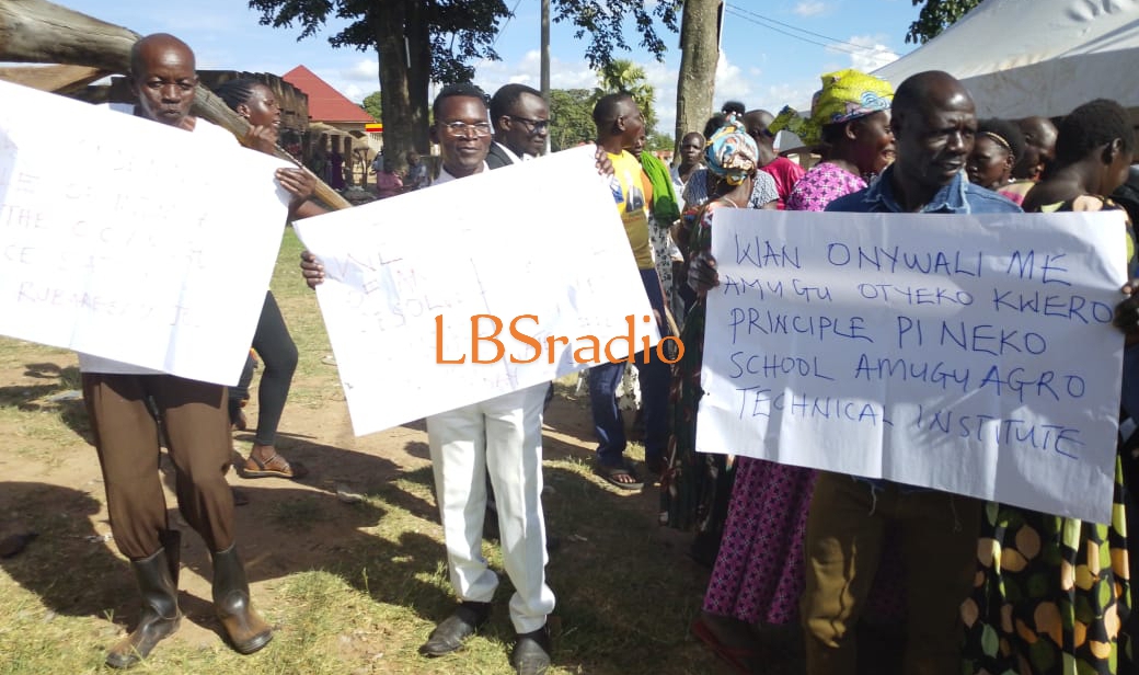 ALEBTONGCommunity of Amugu town council in Alebtong District on Sunday staged a demonstration protesting alleged insecurity and poor management, which they say has led to the decline in Student Enrolment and good performance of Amugu Agro Technical Institute.